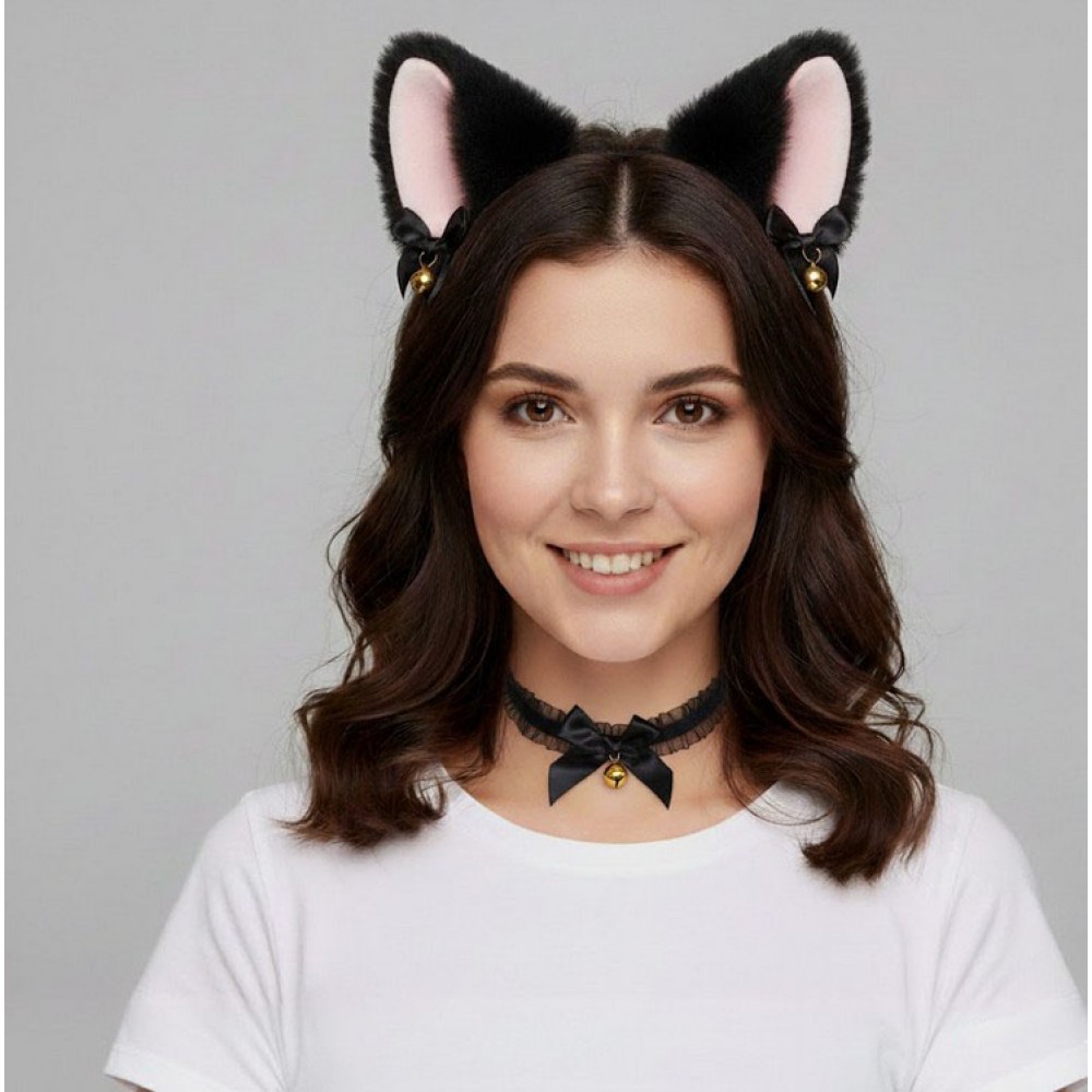 Чокер «Чёрная кошечка» — декоративный аксессуар для образов в стиле кошечки и косплея. Он выполнен в чёрном цвете и выглядит аккуратно за счёт сочетания ленты с рюшами, бантика и декоративного колокольчика в центре. Такой чокер хорошо дополняет образы с ушками, платьями и топами в «милом» или тематическом стиле, и заметно смотрится в кадре.