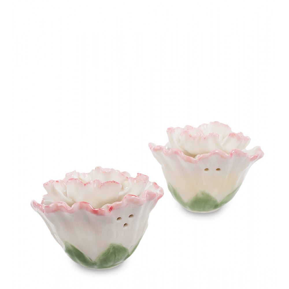 Набор соль-перец "Гвоздики" (Pavone); Набор соль-перец « Гвоздики » - это не просто неотъемлемый столовый аксессуар, а настоящее произведение искусства фарфоровой мануфактуры. Солонка и перечница выполнены в виде распустившихся бутонов гвоздик, которые выглядят настолько реалистично, что, кажется, будто бы они наполняют помещение приятным цветочным ароматом.