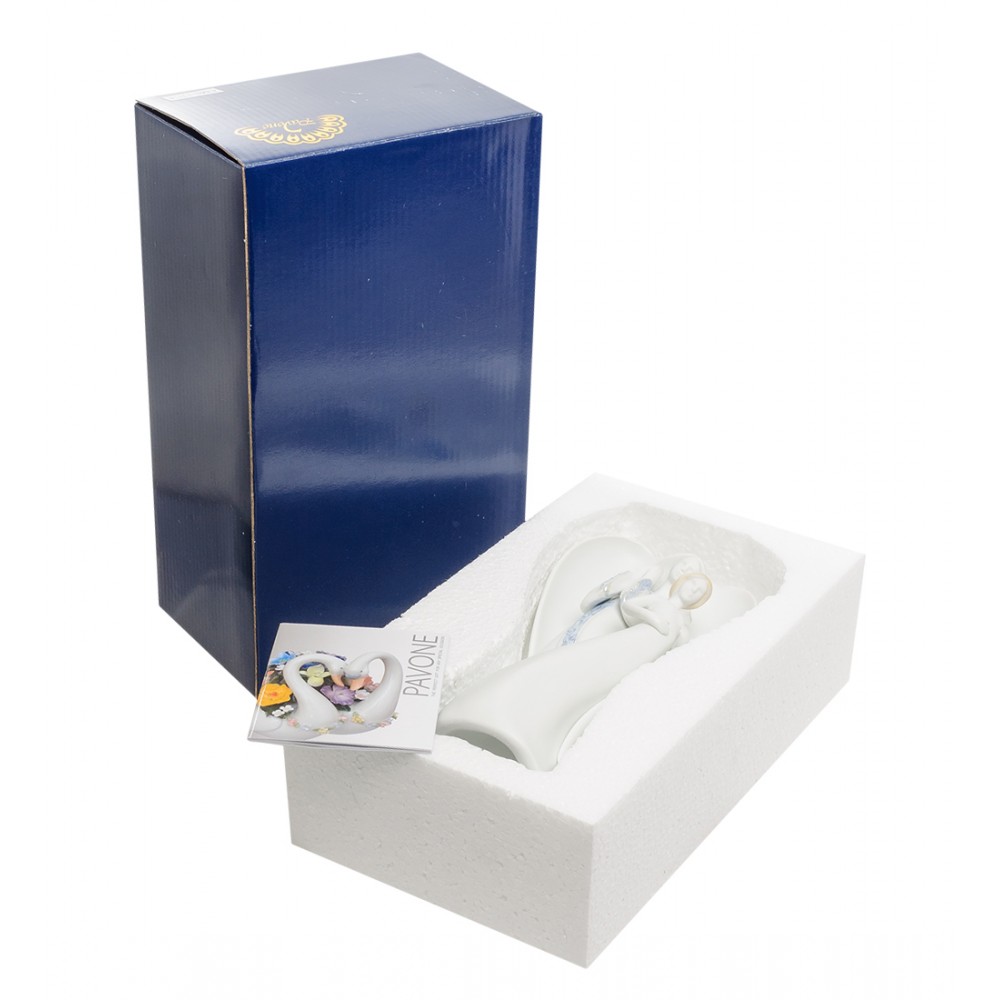 Древняя легенда говорит, что как только человек приходит в наш мир, за его спиной возникает ангел-хранитель, который прячет его собственными крыльями, защищая от зла и боли.; Фигурка « Ангел-хранитель » , входящая в коллекцию Павоне, считается фарфоровой фантазией на эту поразительную тему. Изделие олицетворяет белокрылого ангела, стоящего за спиной матери, которая держит на руках новорожденного ребенка.