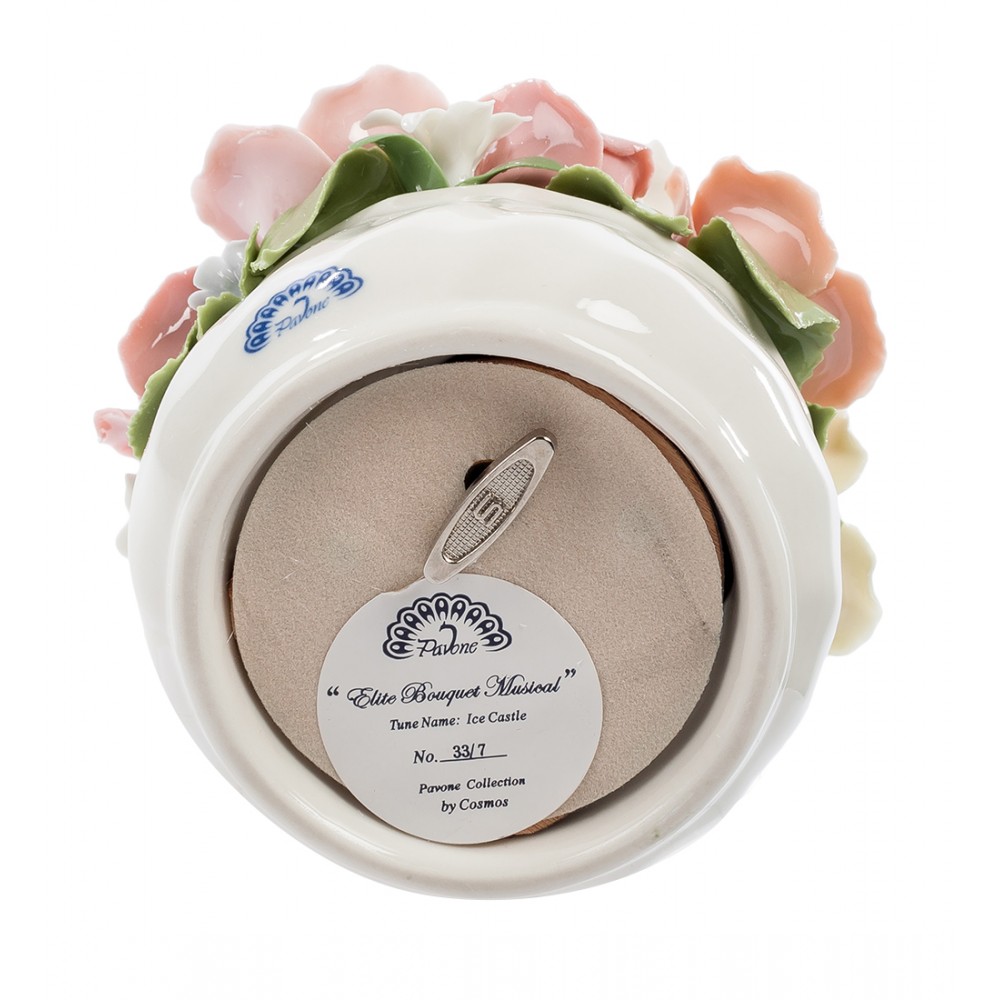Музыкальная композиция "Ваза для цветов с цветами" (Pavone); Когда в доме стоит букет цветов, это создает особое, праздничное даже, настроение. Вот и эта корзина с цветами – символ праздника в душе, который останется надолго. Кажется невероятным, что из фарфора можно создать такие удивительно тонкие и изящные листья и лепестки цветов. А нежные белые и розовые розы прямо как живые, даже понюхать их хочется!