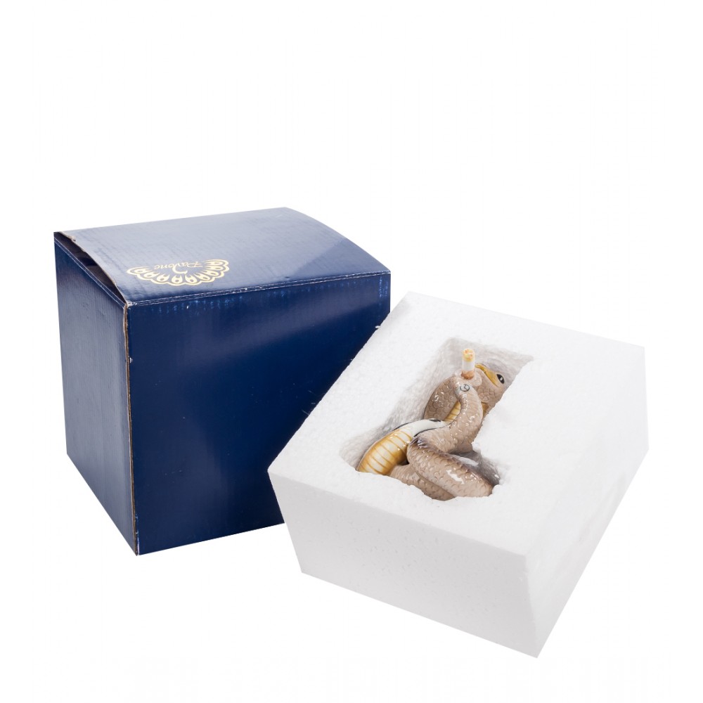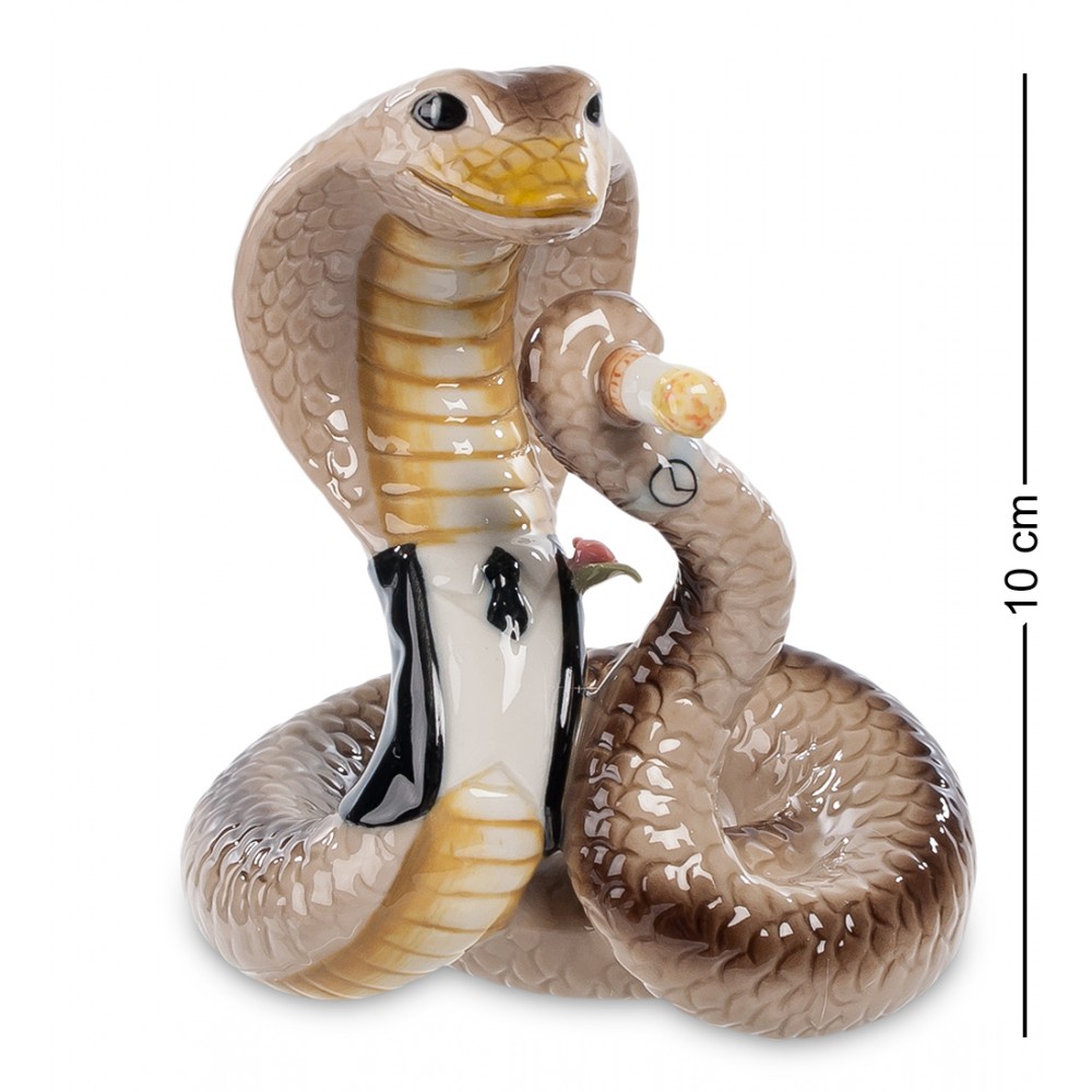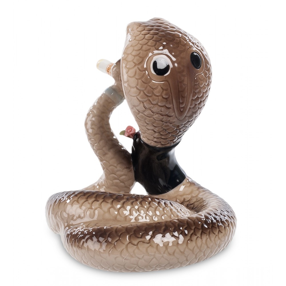 Если вы соберетесь подарить такую фигурку своему начальнику, не забудьте напомнить ему, что среди многочисленных свойств змеи имеется большая мудрость. И пожелайте быть действительно мудрым и проницательным боссом. Эта роскошная змея, распустившая капюшон и уставившаяся на окружающих пронзительным взглядом, действительно изображает босса. Кончиком хвоста она обвила недокуренную сигарету, на хвосте, как на запястье руки, надеты часы, на шее – манишка с бабочкой. Ну, вылитый начальник, строгий, но, надеемся, справедливый. Пусть стоит на столе в кабинете, помогает запугивать сотрудников.
