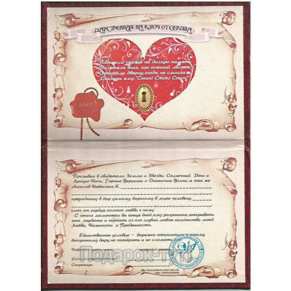 Диплом Дарственная на ключ от сердца (рус) PT-SERT5