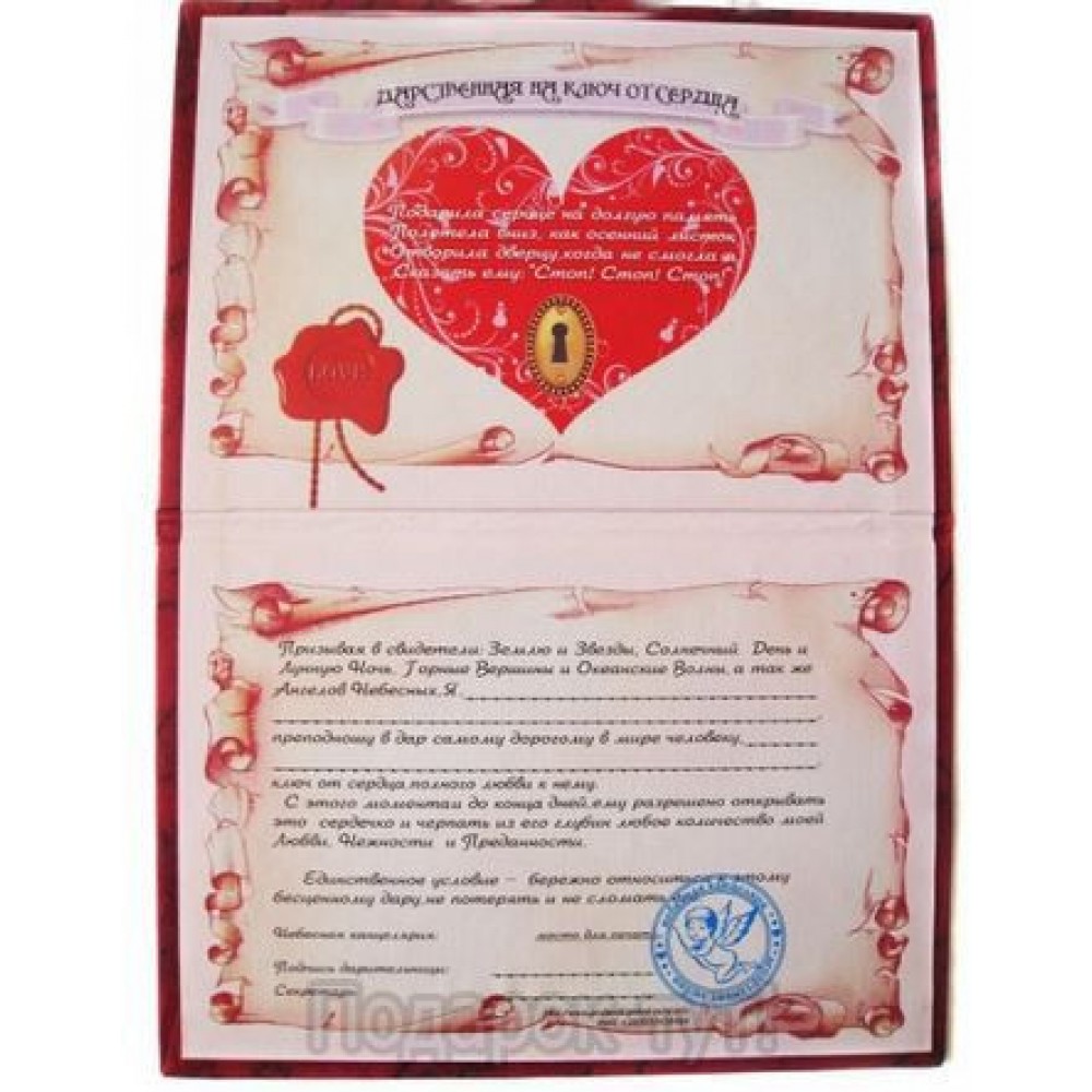 Дарственная на ключ от сердца, русским языком.
