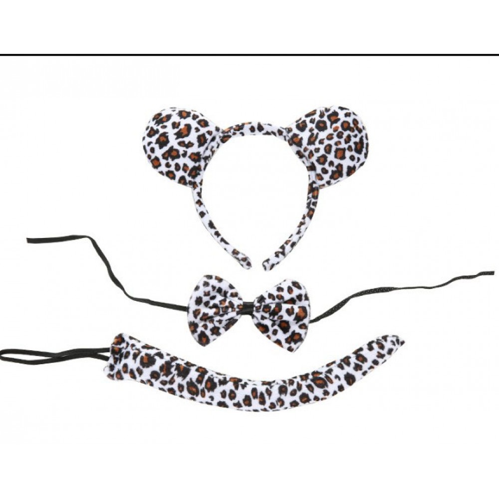 Детский карнавальный набор «Леопард»: обруч с ушками, бантик и хвост, леопардовый принт