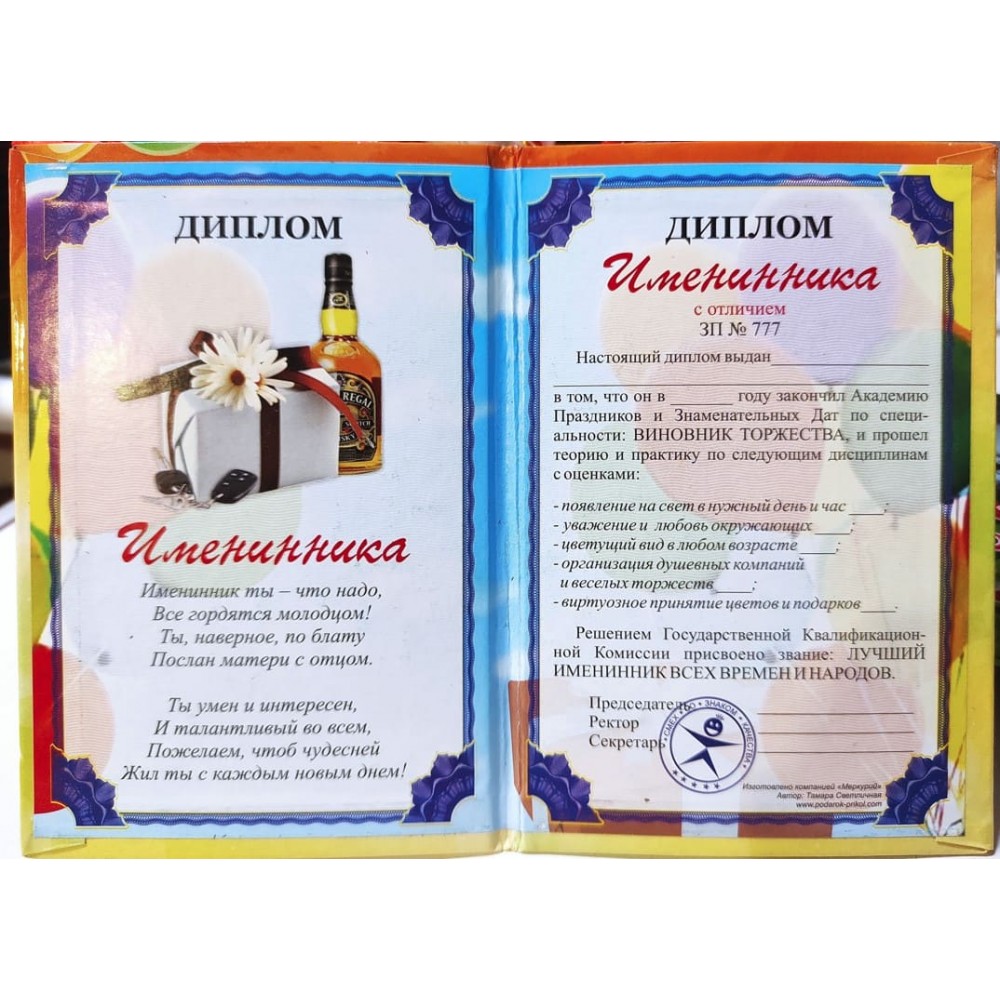 Диплом прикольный (украинский вариант) "Именинника" PT-DIP41