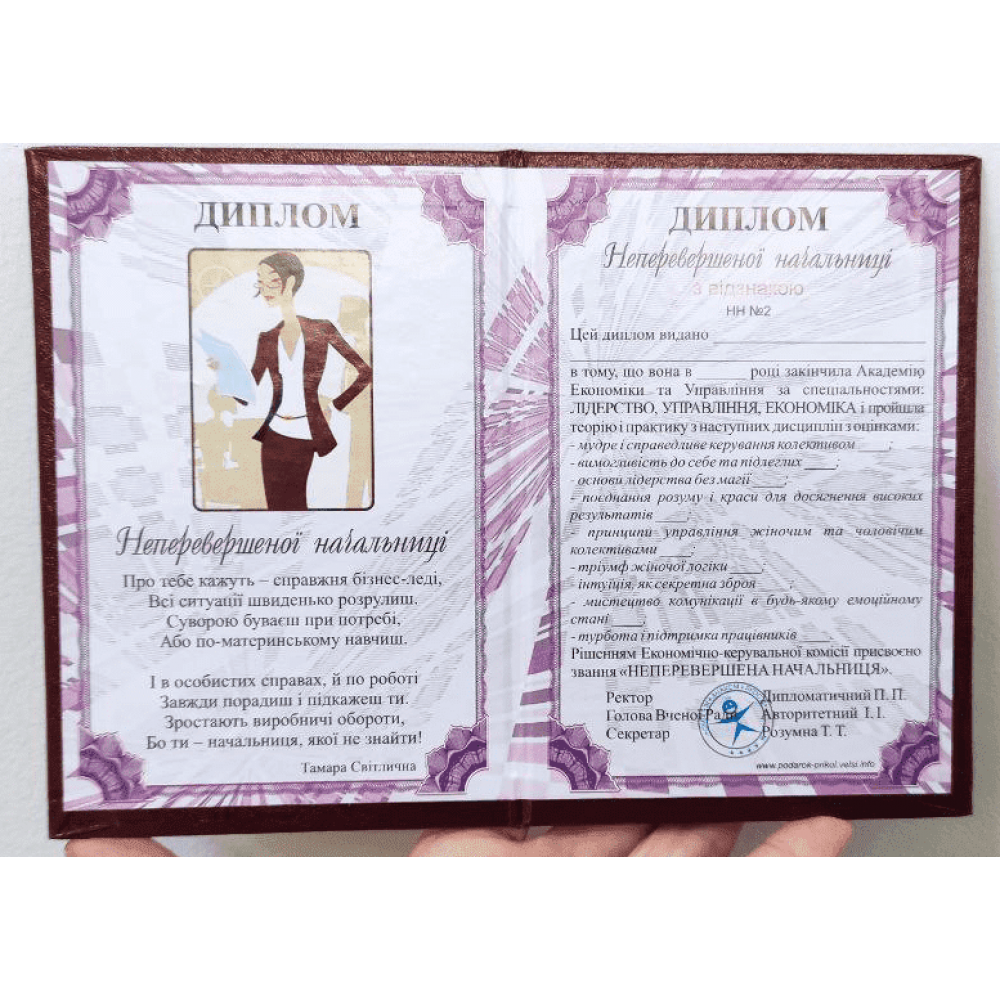 Шуточный диплом Непревзойденной начальницы PT-DIP157