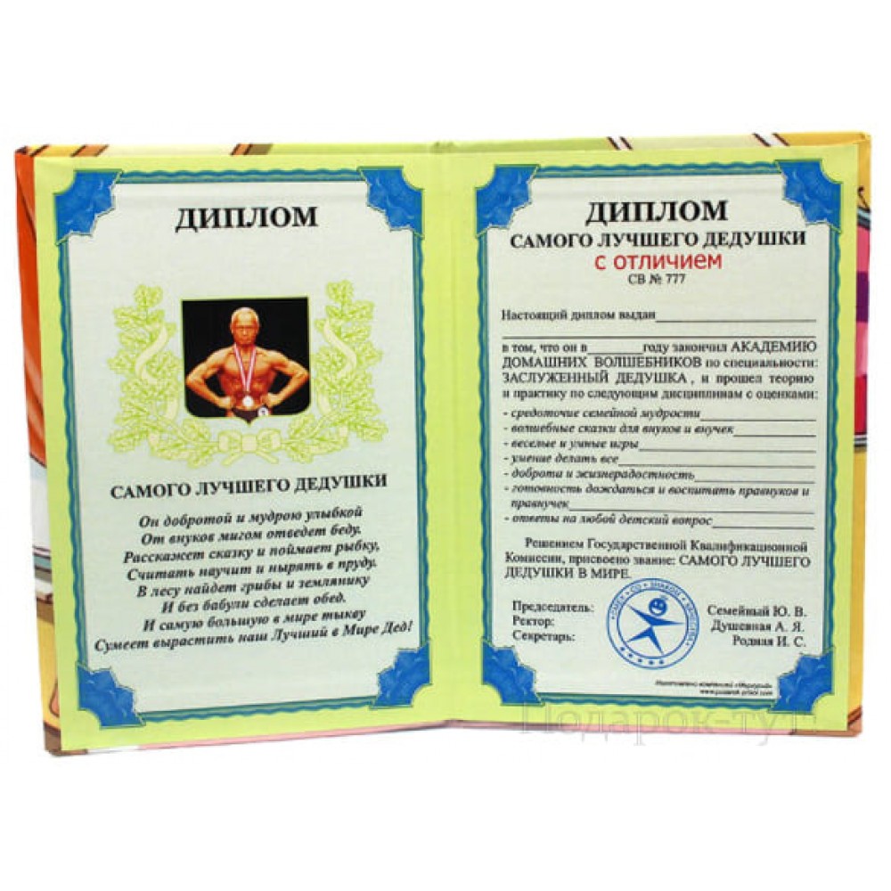 Шуточный диплом "вариант -1" Самого лучшего дедушки PT-DIP117