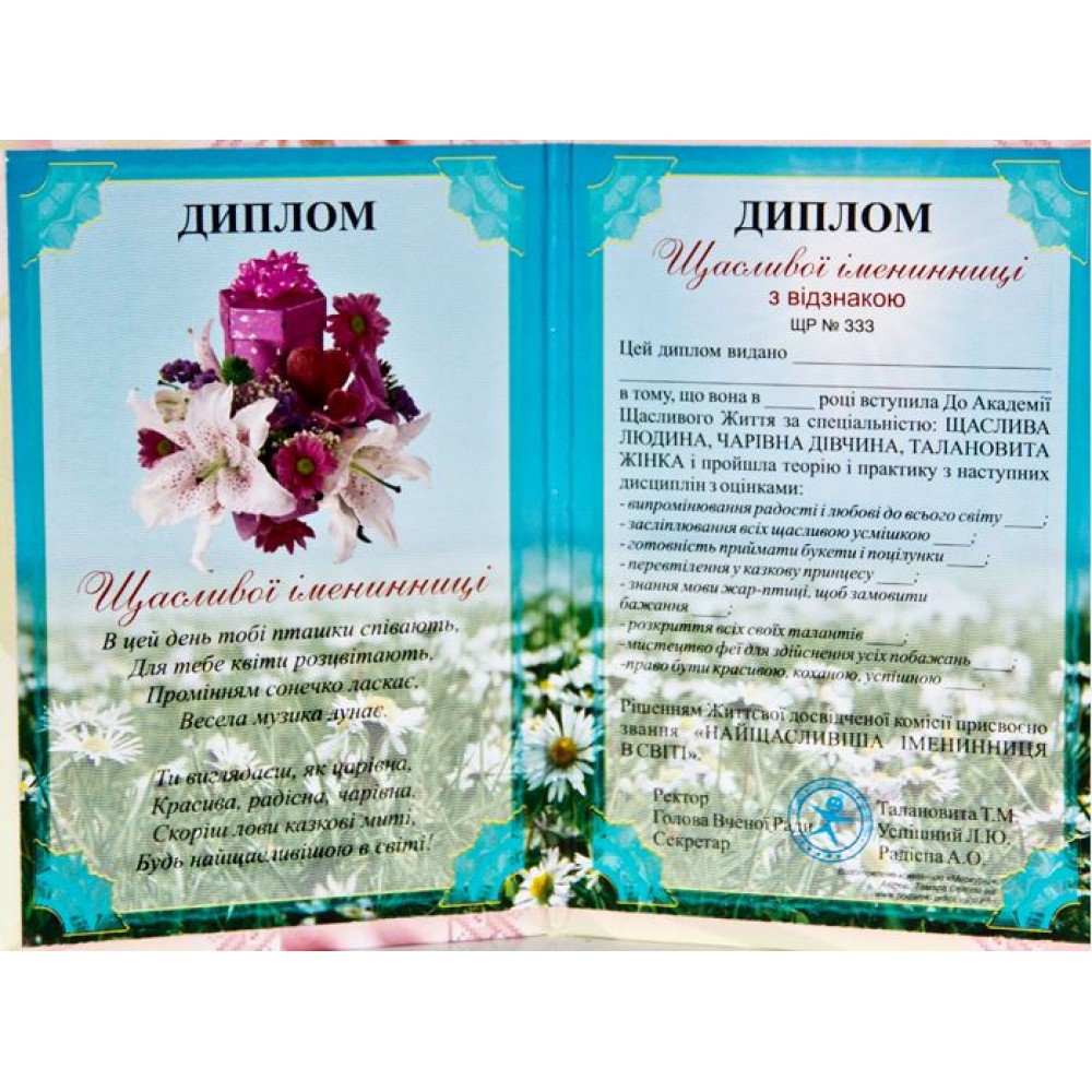 Диплом прикольный (украинский вариант) "Счастливой именинницы" PT-DIP47