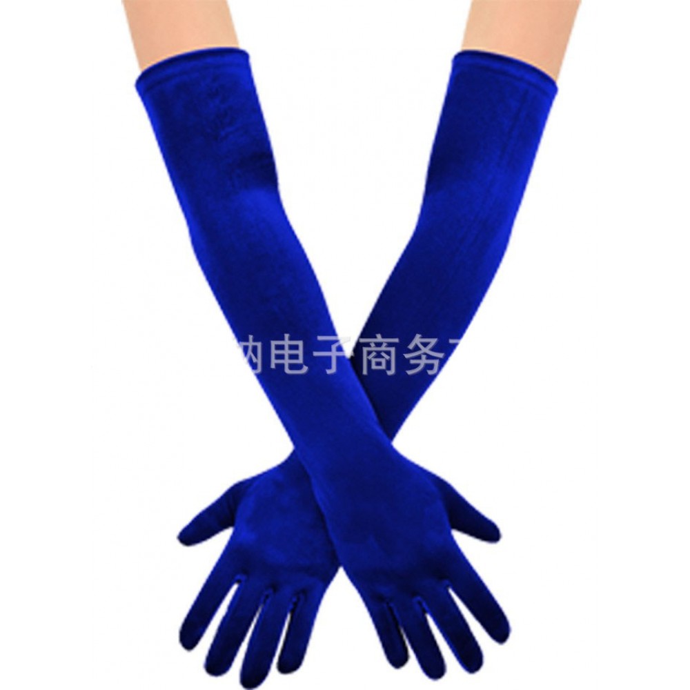 Длинные бархатные перчатки тёмно-синие 53 см для гангстерской вечеринки