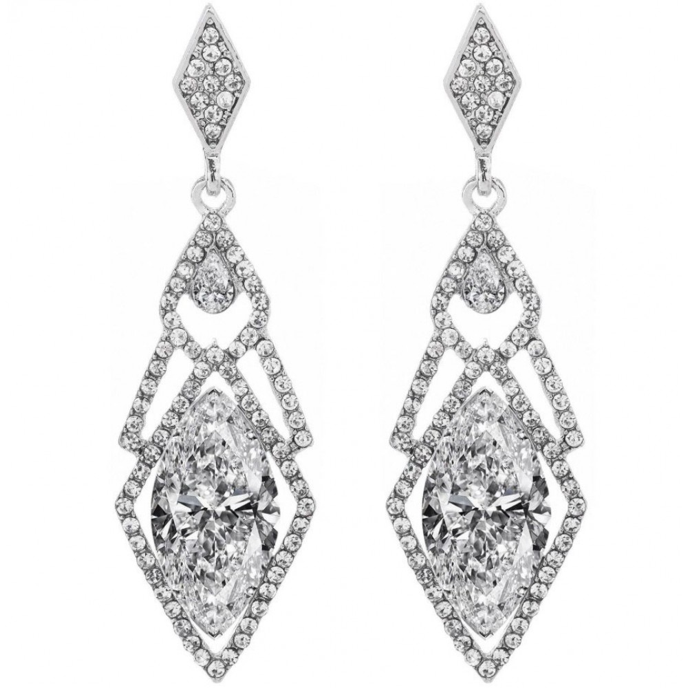 Длинные серебристые серьги с крупным кристаллом в стиле Гэтсби для гангстерской вечеринки