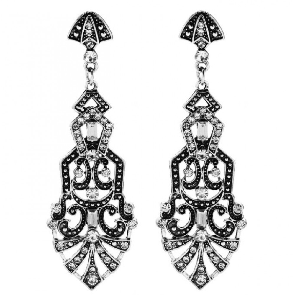 Длинные серьги в стиле ар-деко под старое серебро для гангстерской вечеринки