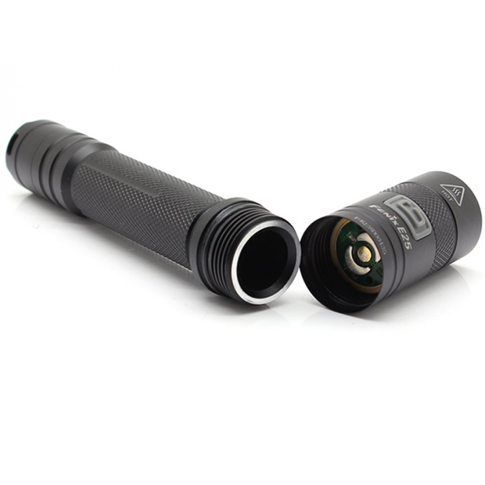 Компактный и легкий фонарь E25 Cree XP-E от производителя Fenix, являющегося новинкой этого года. В модели используется светодиод XP-E от американской компании Cree с максимальной мощностью 187 люменов, способный осветить пространство на расстоянии 156 метров. Фонарь Fenix E25 Cree XP-E имеет три уровня яркости, которые переключаются удобной кнопкой в головной части: 187 лм (время непрерывной работы 2 часа 20 минут), 90 лм (6 часов 15 минут) и 27 лм (26 часов). Работу фонаря обеспечивают два питающих элемента стандарта АА. Во избежание потери работоспособности модели производитель рекомендует пользоваться качественными батареями и аккумуляторами. Поддержание постоянной яркости, независимо от уровня заряда батарей, обеспечивают повышающий драйвер и специальный контроллер. Конструкция фонаря обеспечивает степень защиты от влаги IP-X8. Фонарь выдерживает 30-минутное погружение в воду на глубину до двух метров.Гарантия:
