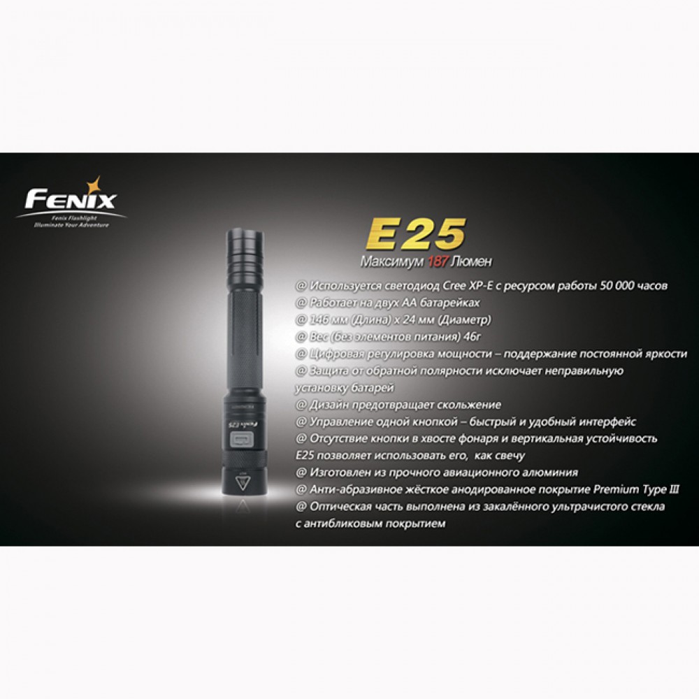Гарантийный срок, установленный производителем – 5 лет с даты продажи.Особенности модели Fenix E25:
