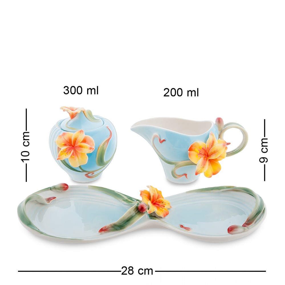 - Размеры изделия - Длина: 28 см; Ширина: 12 см; Высота: 11 см; Вес: 0.8 кг.; Объем молочника: 200 мл; Объем сахарницы: 300 мл;