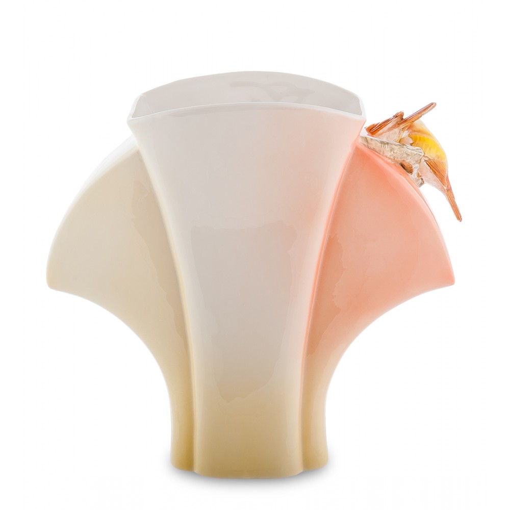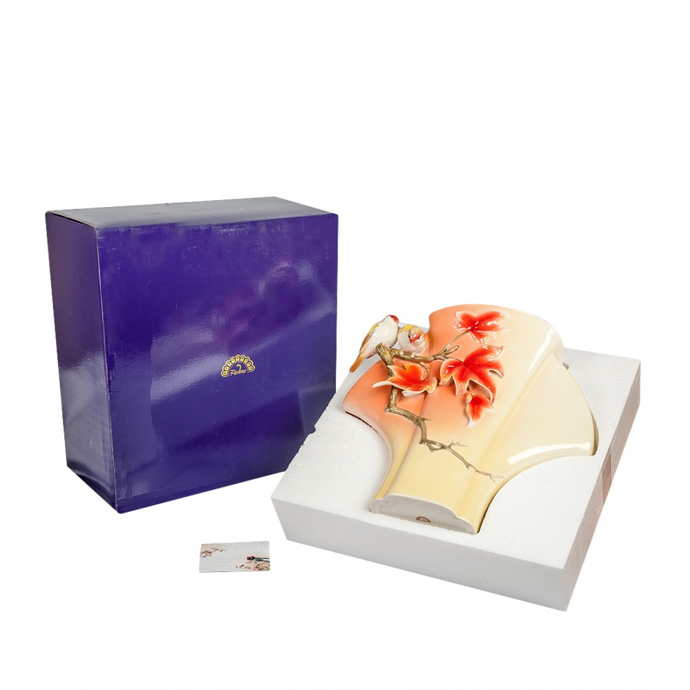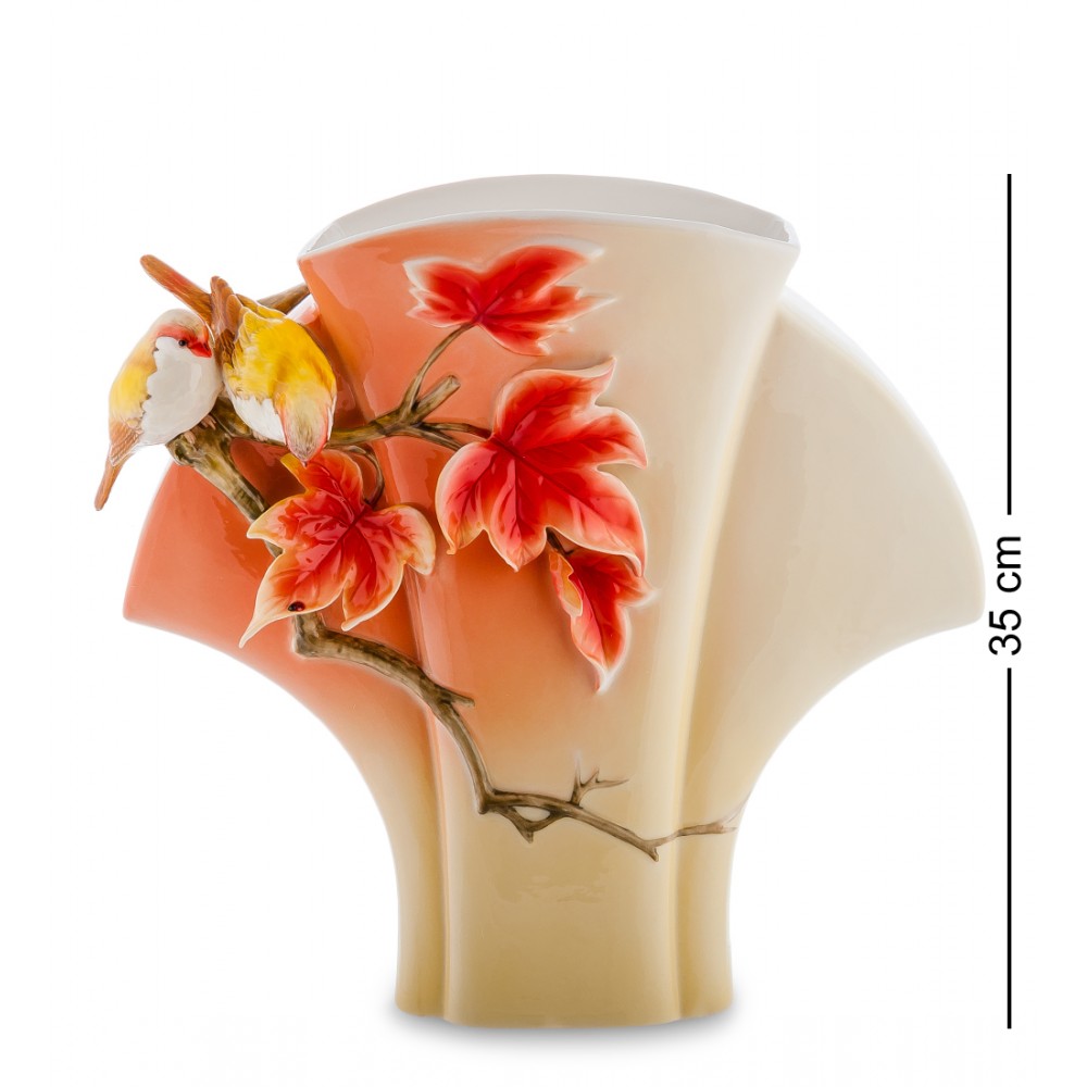 Поразительная и великолепная ваза 'Кленовый лист" очаровывает с первых мгновений. Нежные оттенки персикового цвета, в комбинировании с сочным багрянцем осенних листьев, создают действительно прекрасное изделие. Необходимо обратить свое внимание, как реально выглядят птички на ветке дерева!