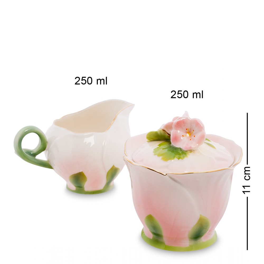 - Размеры изделия - Длина: 24 см; Ширина: 12 см; Высота: 11.5 см; Вес: 0.45 кг.; Объем молочника: 250 мл; Объем сахарницы: 250 мл;