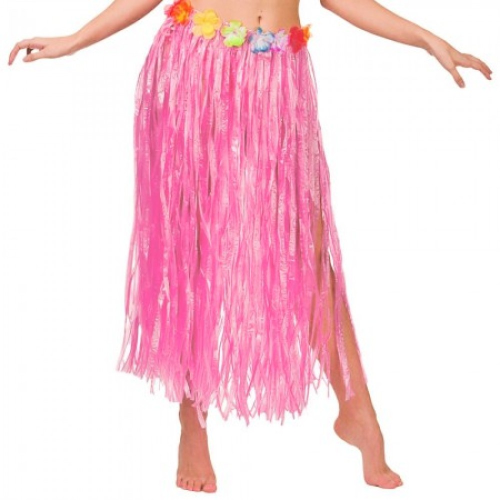 Гавайская юбка (75 см) розовая с цветами для яркой вечеринки