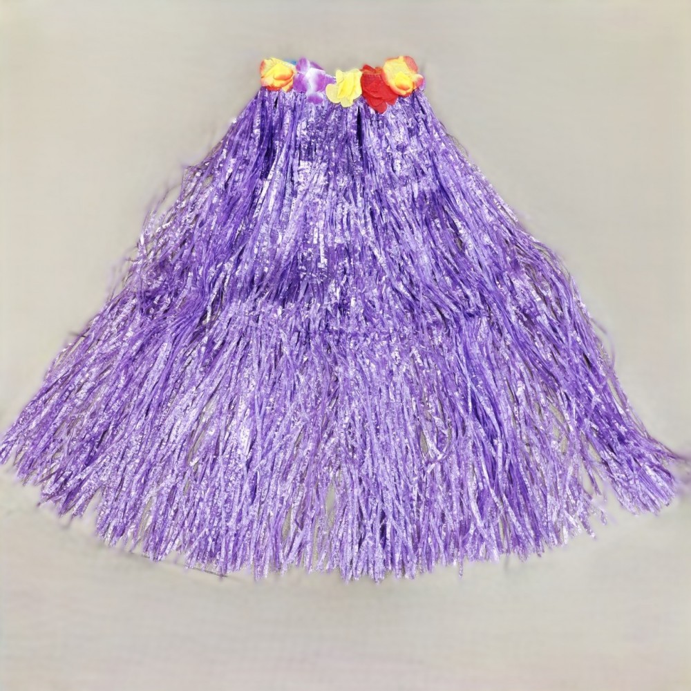 Гавайская юбка хула фиолетовая 80 см, с цветами — песнь тропического ветра