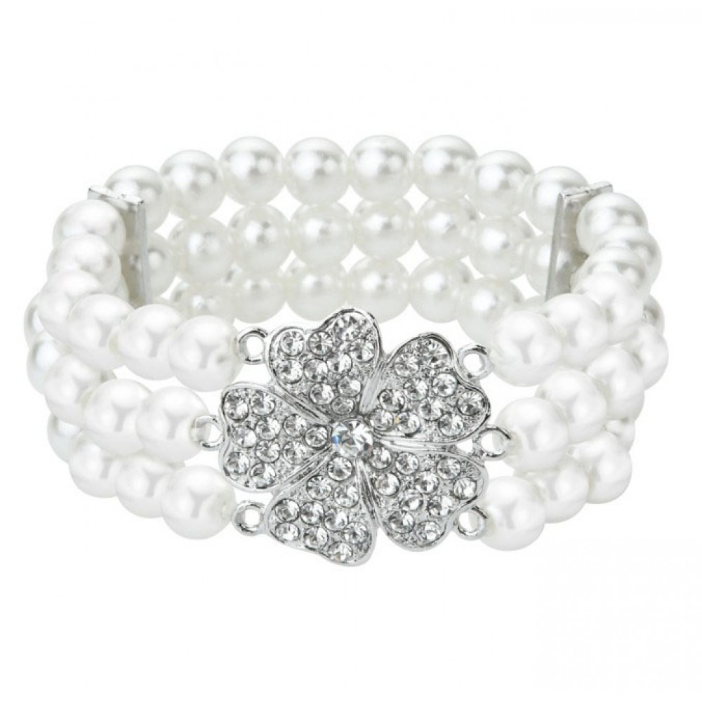 Жемчужный браслет в три ряда с цветком из страз для гангстерской вечеринки