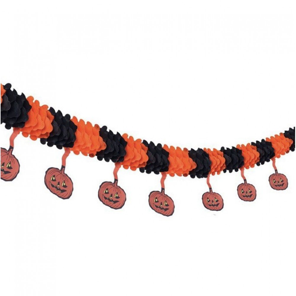 Гирлянда на Хэллоуин «Подвесные тыквы» бумажная, 3 м, чёрно-оранжевая