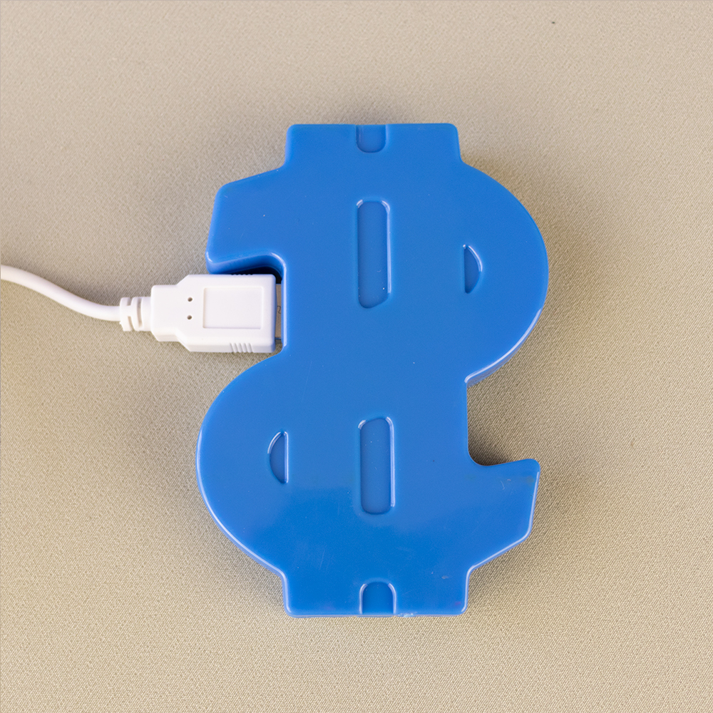 USB-разветвитель – весьма полезная вещь, позволяющая подключить массу устройств, начиная с принтеров и заканчивая коммуникаторами, без необходимости искать свободный порт где-то под столом. USB-разветвитель – это USB-хаб оригинальной форме Доллара. Устройство имеет 4 порта USB 2.0. В комплект входит: USB-хаб и шнур USB А/USB mini B. Модель совместима с камерами, сканерами, принтерами и другими устройствами. С его помощью вы сможете подключить множество USB-устройств, таких как внешние жесткие диски, флеш-накопители, видео- и фотокамеры и т.п., к своему компьютеру или ноутбуку. Наш интернет-магазин Подарок-ТУТ богат сюрпризами. Если поздравлять с определенным торжеством вам предстоит того, кто работает с информацией и чаще всего за компьютером – логично будет купить хаб, как средство существенно облегчить и сделать комфортнее работу такого специалиста. Подарив хаб Доллар, вы создадите возможность для результативной, творческой и комфортной работы с данными разного рода, но и преподнесете этакий счастливый неразменный Бакс, который неразлучно будет со своим владельцем! Такие оригинальные подарки, символизирующие финансовое процветание и прибыль, всегда в чести!