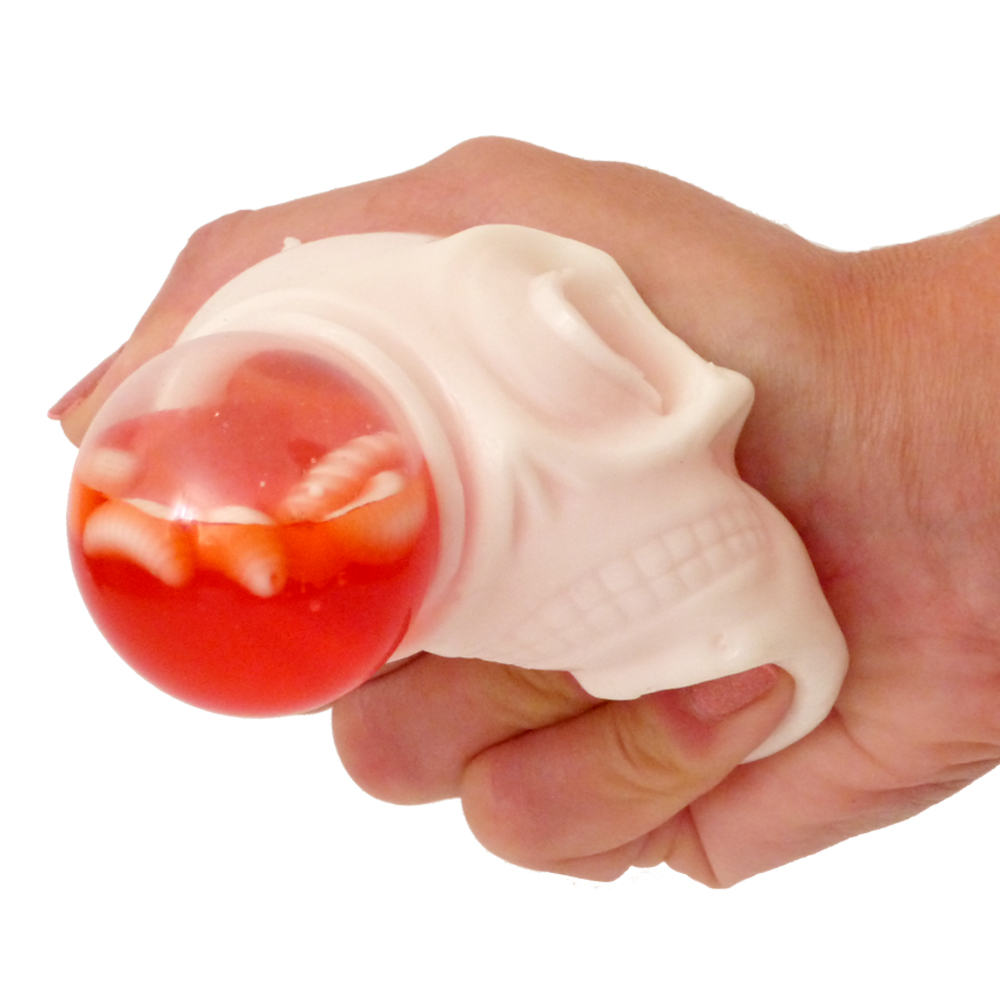 Игрушка антистресс Череп Гуманоида с червями (белый с красным)