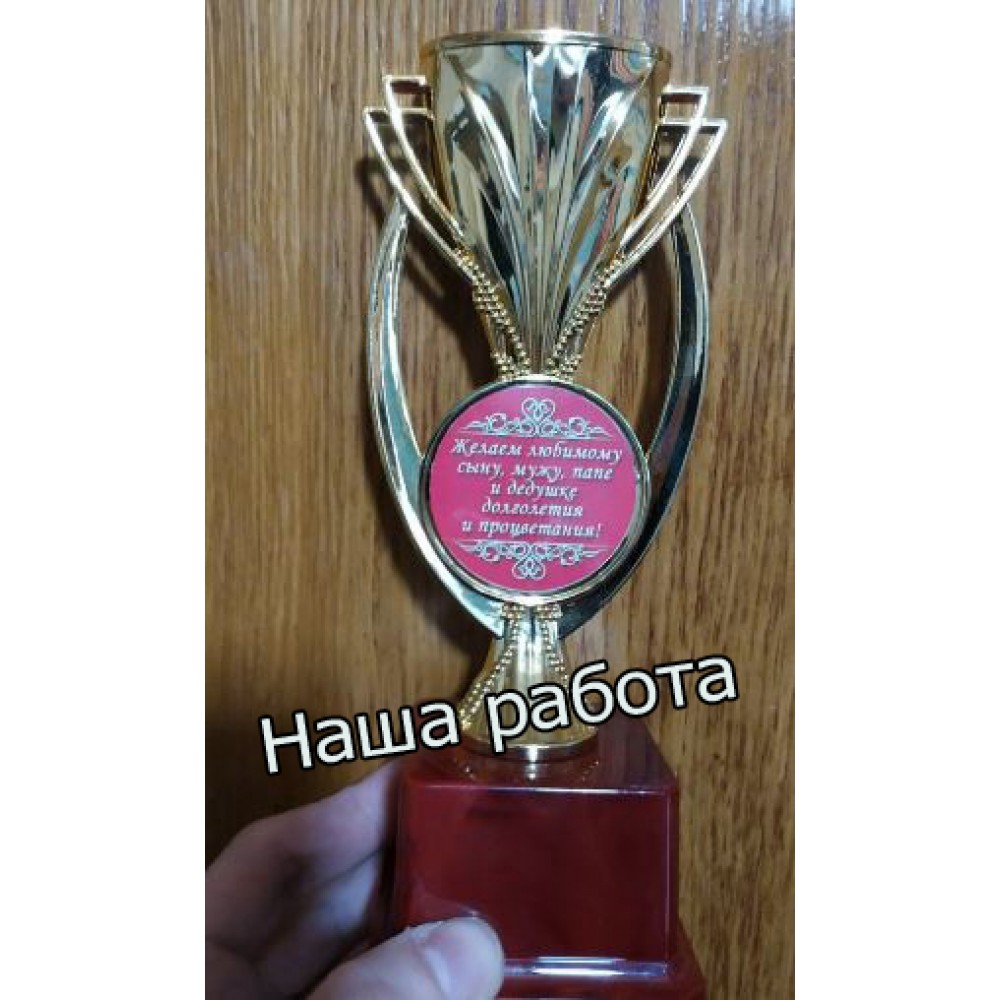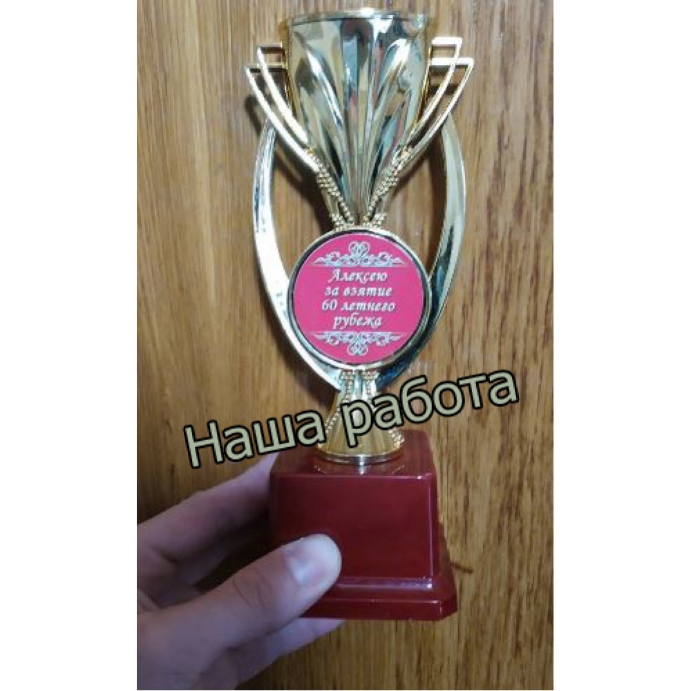 Онлайн-магазин Подарок-тут представляет для вас услугу печати индивидуальной надписи на фигурках с диаметром жетона 50мм. Цвет фона: зеленый. Цвет текста надписи на фигурках: имитация золота. Мы делаем индивидуальную печать надписи для фигурок шрифтом Impact. Максимальное количество символов на данном жетоне: 50 символов (с учетом пробелов и знаков пунктуации), максимальное количество строк для размещения - 4. Печать текста делается на фотобумаге и потом ламинируется. Макет для печати делается согласно представленному шаблону. Текст свободный, но не больше предельного числа символов. Гравировальных работ мы не проводим. Отгрузка товаров с индивидуальной надписью делается на следующий рабочий день после доказательства макета и оформления заказа. У нас большой выбор кубков для спортивных и танцевальных состязаний, выпускных вечеров, проведения церемоний награждения и подарков на корпоратив и сувениров. И это абсолютно не все, что мы можем для Вас сделать. Остались вопросы? Задайте их менеджеру, заказав звонок на сайте.