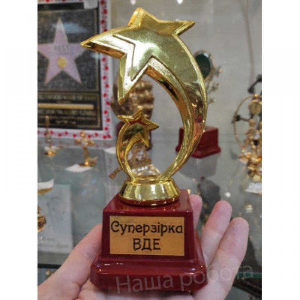 Гравировальных работ мы не производим. Отгрузка товаров с индивидуальной надписью делается на следующий рабочий день после доказательства макета и оформления заказа. Очень большой выбор кубков и фигурок – все ради Ваших желаний. Воспользуйтесь подобной перспективой и закажите у нас услугу Табличка для кубков и фигурок. При выполнении применяются пленка толщиной 1 мм и специализированная клеевая основа с напылением из золота. У нас большой выбор кубков для спортивных и танцевальных состязаний, выпускных вечеров, проведения церемоний награждения и подарков на корпоратив. И это абсолютно не все, что мы можем для Вас сделать. Остались вопросы? Задайте их менеджеру, заказав звонок на сайте.