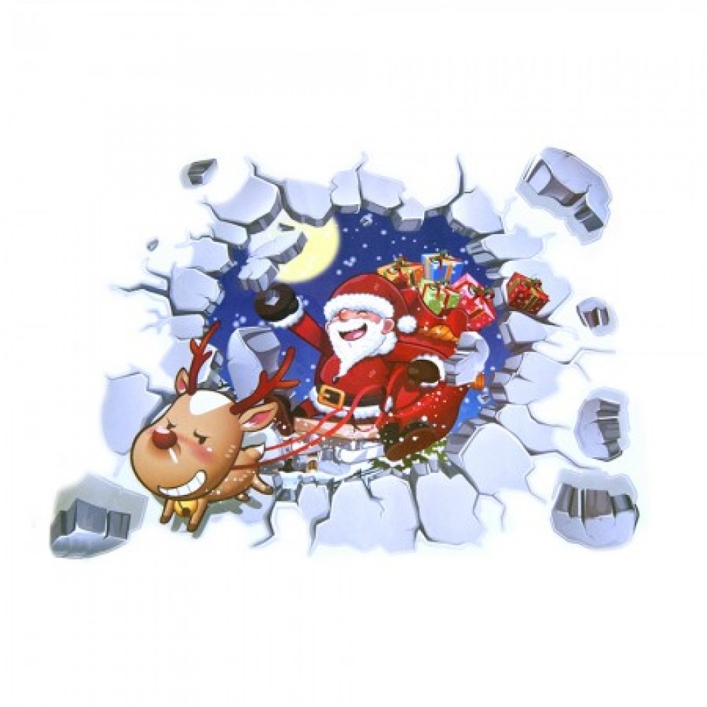 Интерьерная наклейка 3D Санта Клаус разбитая стена ABQ6005 45х60см (NG1-0119)
