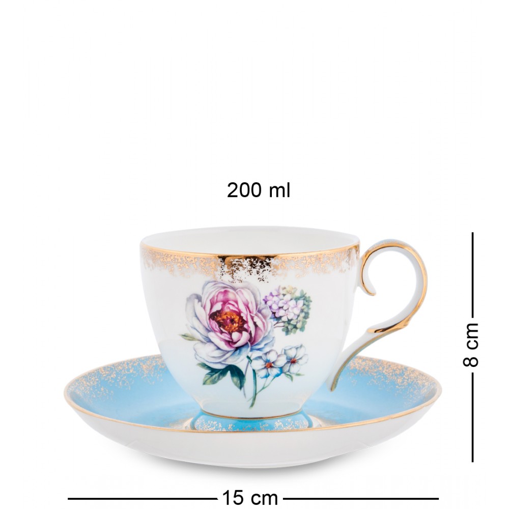 Размер чайной пары: 15 х 8 см; объем чашечки: 0,2л. ;