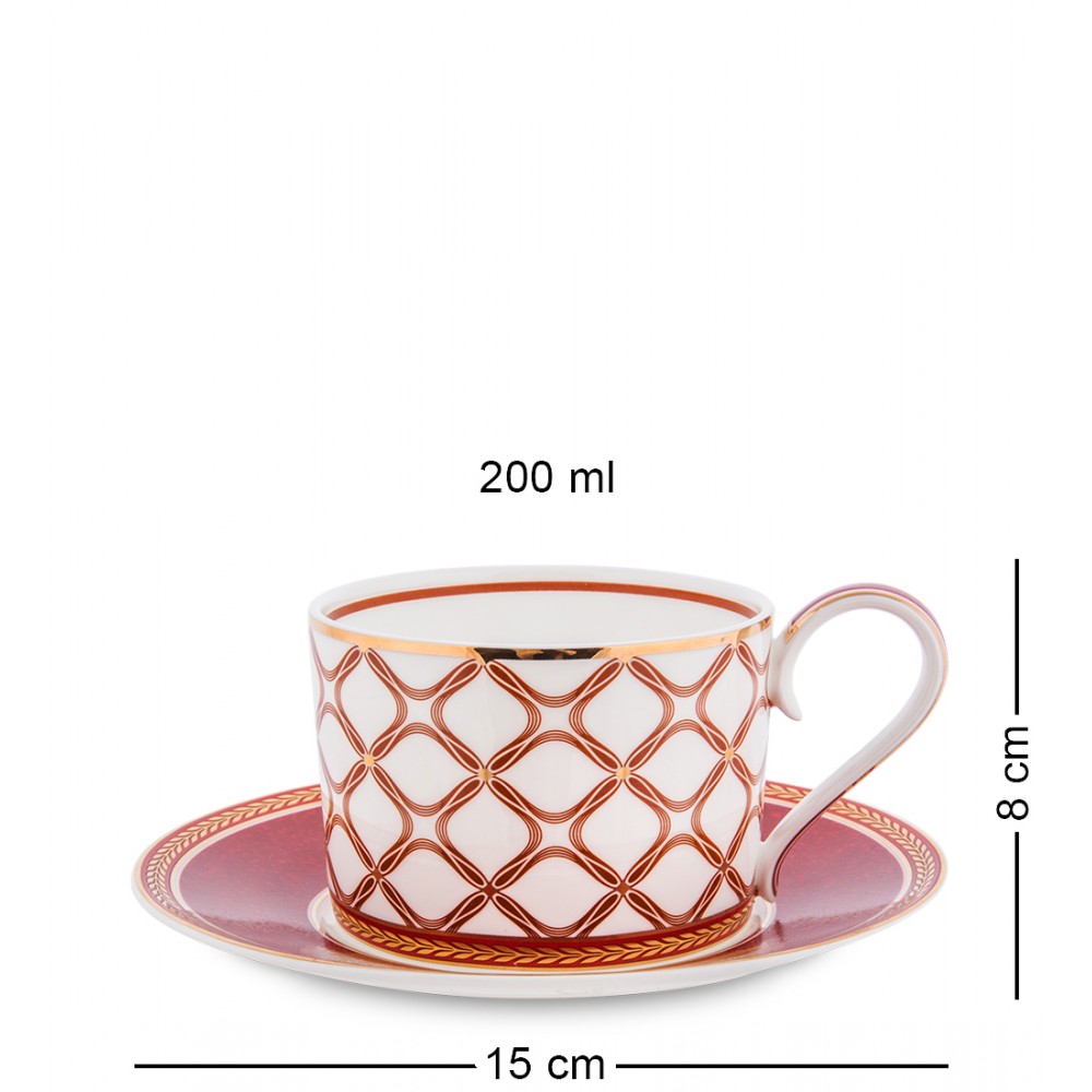 Размер чайной пары: 15,5 х 7,5 см; объем чашечки: 0,2л. ;