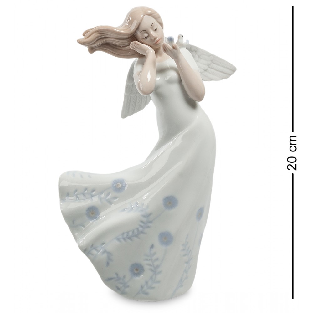 Ангелы – существа, которых все представляют по-разному: художникам дан зеленый свет изображать их так, как Бог на душу положит, к тому же, некоторым удается встречать людей с ангельским характером в жизни. Фигурка « Ангел » , сделанная из фарфора, изображает божественное создание в виде молодой девушки в белом платье, приютившей на ладони левой руки символ мира - белого голубя.