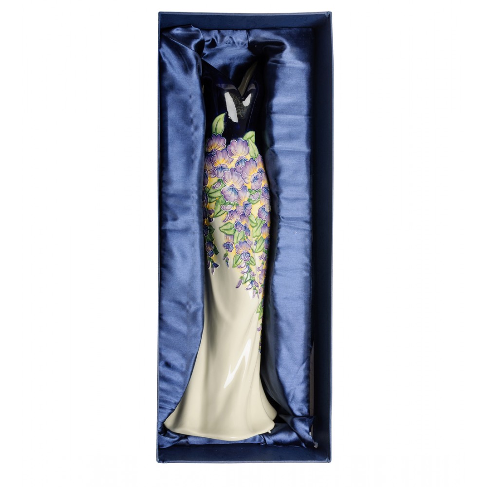 Напольная ваза в виде Изысканного платья – это нечто особенное, что, без капли сомнения, украсит вашу гостиную комнату. Сочетание белого и черного как всегда идеально, оно вечно и универсально. Черный верх удивительно выделяется на фоне белоснежного низа платья. Нежнейшие цветы нарисованы настолько мастерски, что от них невозможно оторвать восторженного взгляда. Без этих мелких акцентов ваза не выглядела бы настолько роскошно.