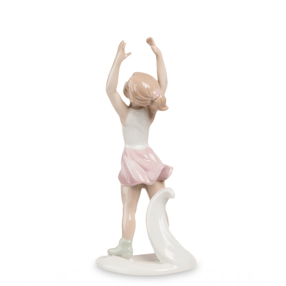 Всем нравится наблюдать выступления фигуристов, которые способны творить чудеса ловкости, демонстрируя невиданную гибкость и пластику. Для того, чтобы произвести впечатление на жюри и зрителей, фигуристам приходится тратить годы на отработку движений, растягивание связок и постановку техники движения на льду. Небольшая, 17-сантиметровая фарфоровая статуэтка « Фигуристка » посвящена тяжелому виду спорта и изображает маленькую девочку, решившуюся сменить привычную обувь на коньки и делающую первые шаги в сложный, но очень красивом виде спорта.