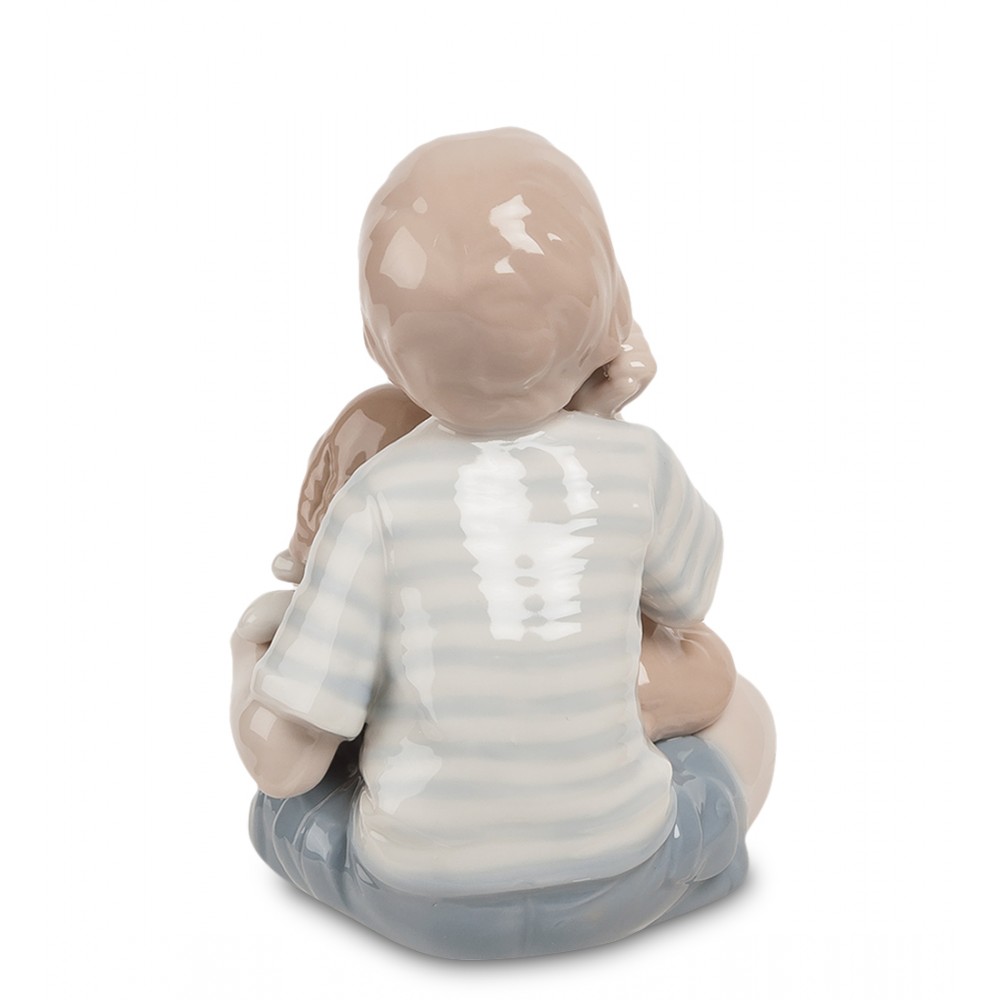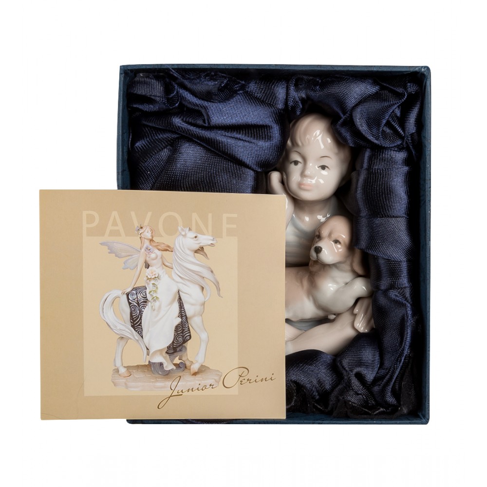 Керамика Павоне характерна своей нежностью, легкостью, блеском и теплотой. Поэтому и статуэтка « Друзья » отличается своим богатством, простотой и эстетичностью. Маленький мальчик в футболке и его верный друг у его ног.