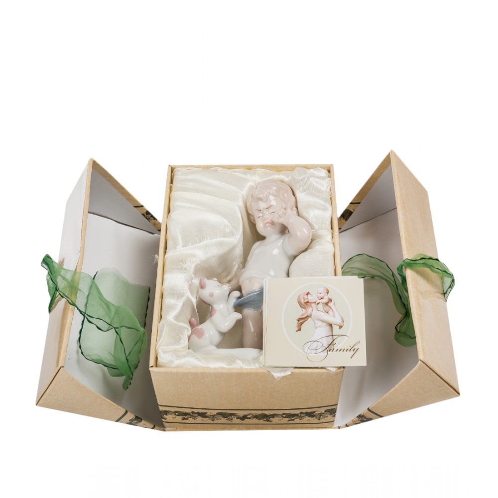 Фигурка « Мальчик » является фарфоровым воплощением самого теплого чувства на Земле – дружбы. В этой композиции мастер изобразил плачущего мальчика, которого утешает верный четвероногий друг.