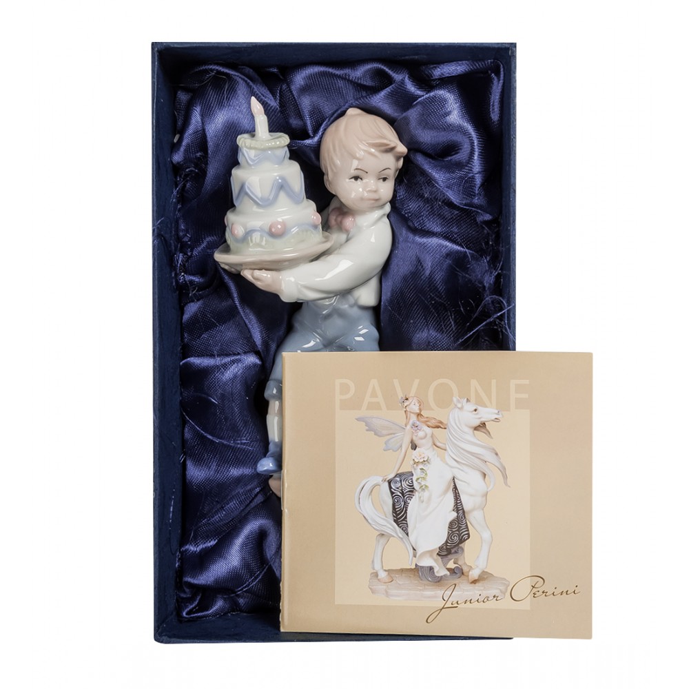 Отблеск фарфора, нежные, светлые оттенки, плавные формы и мелкие детали. Статуэтка « Именинник » будет для вас неподражаемым дополнением коллекции изделий « Павоне » , или уютным, расслабляющим предметом интерьера, который дарит чувство праздника, торжественности.