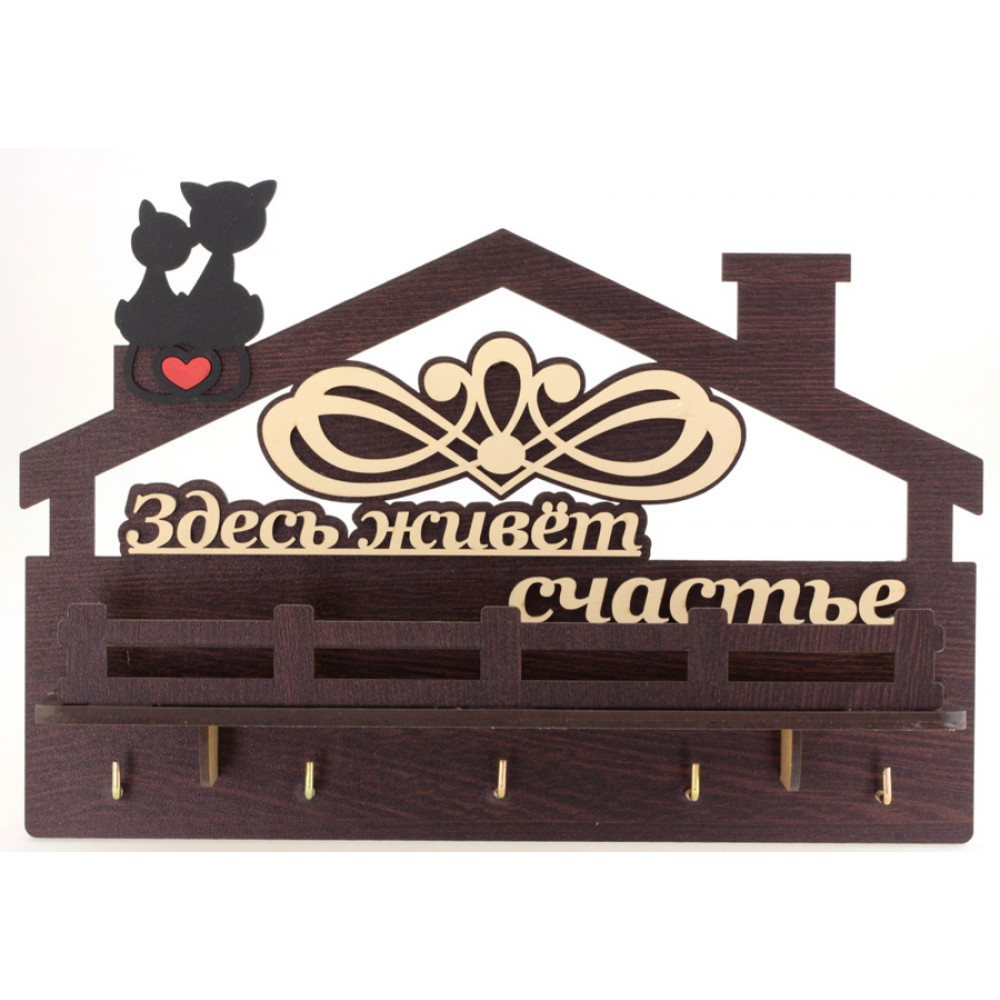Ключница Домик коричневый "здесь живет счастье" (VKK66)