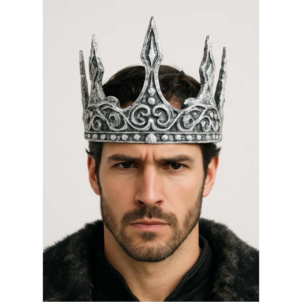 Корона "Тень Льда" словно создана для древнего правителя, чьё сердце заковано морозами далёких земель. Изысканные узоры, острые пики и серебристо-седой налёт придают этому аксессуару истинно королевский характер. В каждом завитке — история о битвах и подвигах, о троне, которому нет равных.