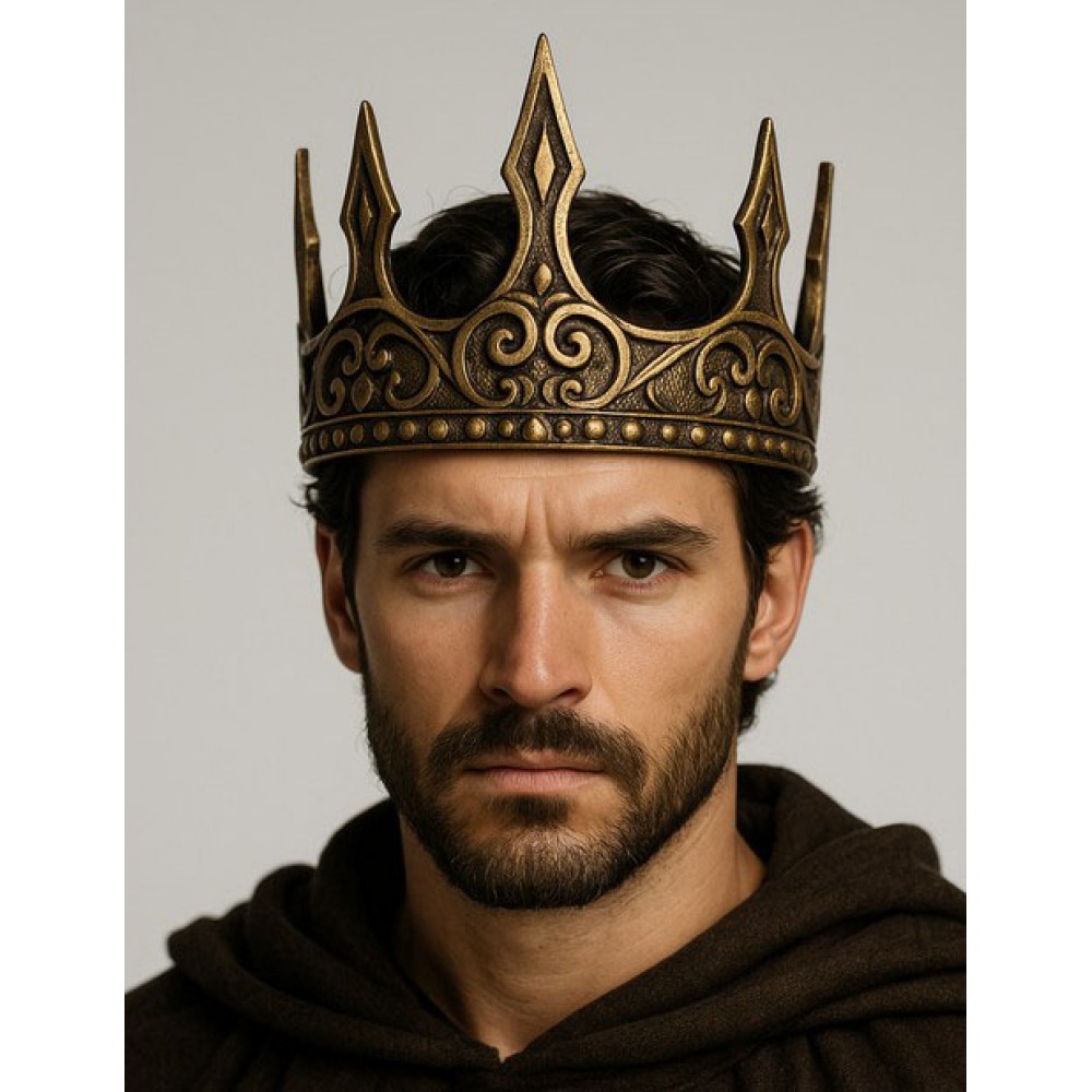 Корона "Владыка Эпохи" создана для тех, кто знает цену власти и гордости. Эта модель словно сошла со страниц древних летописей: резные узоры, утончённые пики, старинное золото с лёгким налётом времени — всё говорит о настоящем королевском величии.