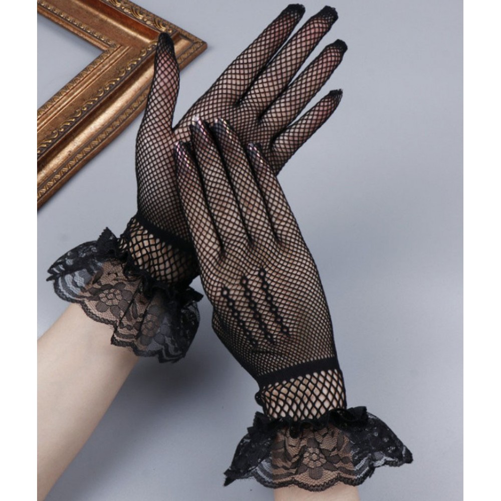 - Тип: короткие ажурные перчатки в сеточку с кружевным воланом