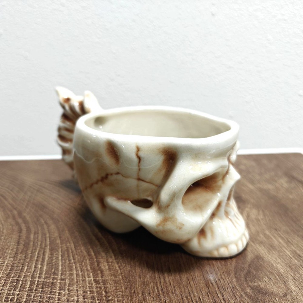 Кружка с уникальным дизайном черепа и ручки в виде костей.Будет необычным подарком, а также для создания атмосферы тематических баров и заведений. Также будет в тему на пиратских вечеринках и как подарок на halloween