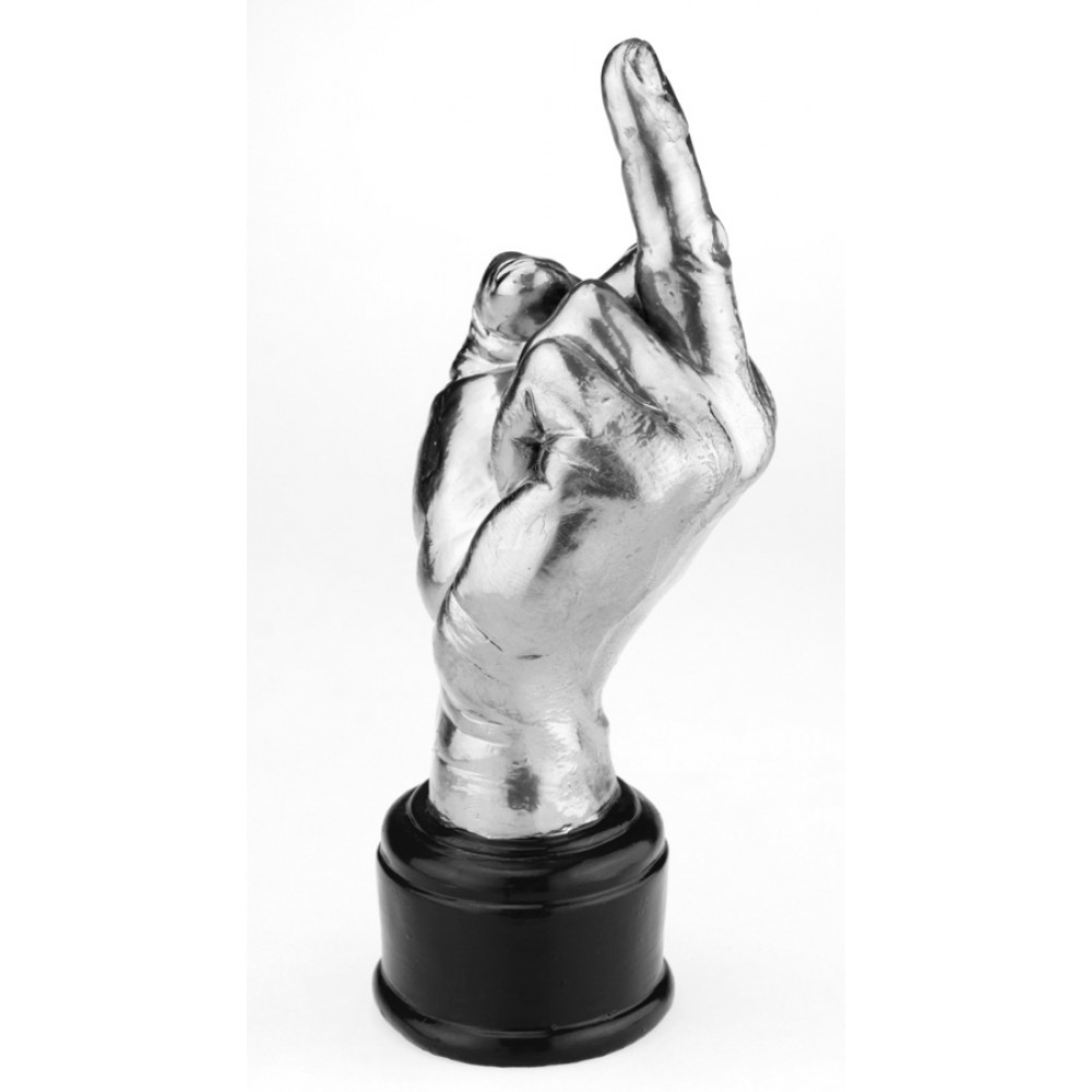 Оригинальный кубок в виде жеста руки фак выполнен в натуральную величину и является ярким акцентом. Этот кубок выглядит необычно и привлекательно, добавляя стильный штрих в интерьер или особенность в особые мероприятия. На пьедестале кубка имеется специальное место для размещения надписи, что позволяет добавить персональный штрих и делает его идеальным выбором для корпоративных подарков или праздничных мероприятий.