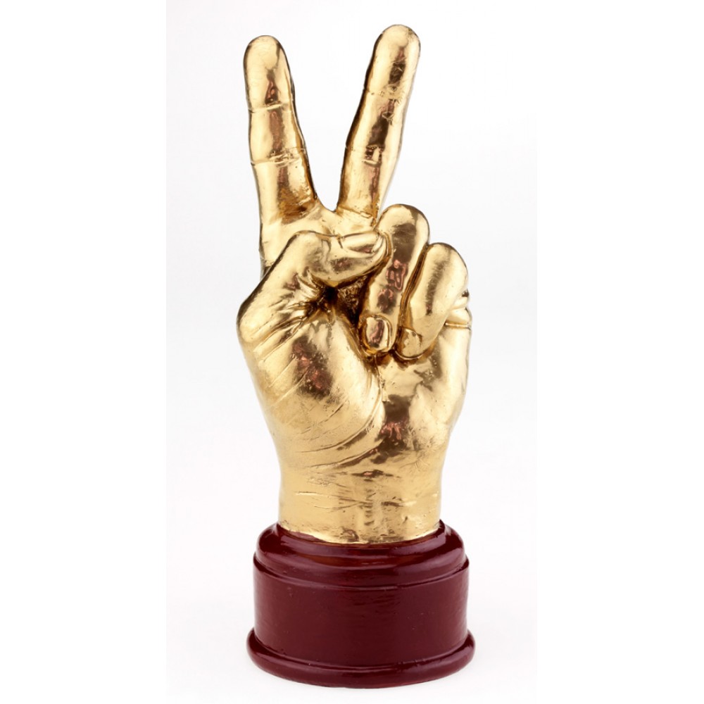 Оригинальный кубок в виде жеста руки V.Что означает "Victory" - Победа! Выполнен в натуральную величину. Выглядит необычно и ярко! На пьедестале кубка имеется специальное место для размещения поздравительной надписи.Оптимальный размер надписи 50*33 мм (ширина/высота) Будет замечательным необычным подарком. А также стильной фишкой интерьера Модель кубка выполнена с реальной руки. Кубок повторяет структуру кожи руки, что придает ему некоторую брутальность. Обращаем ваше внимание, что это не является дефектом данного товара Подарок военному, подарок другу