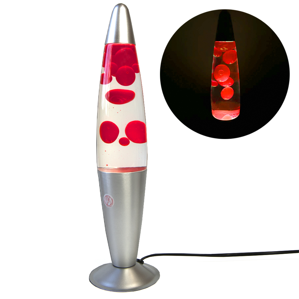 Творческим людям необходимо вдохновение. И каждый находит его в различных вещах. Если Вы ищете то, что будет Вас вдохновлять и давать Вам идеи для творчества. Интернет-магазин Подарок-ТУТ представляет Вам очень необычный аксессуар для Вашей комнаты или кабинета Лава лампа с парафином (40см) красная. Лава лампа с парафином красная - это очень необычный светильник ночник прекрасный источник для Вашего вдохновения. Лава лампа выполнена в виде колбы, в которой находится прозрачное масло и цветной парафин красного цвета. Эту самую колбу надо поместить на подставку, в которой находится лампочка, которая подсвечивает и начинает нагревать парафин. Может кто-то не знает, но в холодном состоянии парафин тяжелее масла и тем самым он лежит на дне колбы, а при нагревании становится легче и начинает плавать по колбе. Лампа представлена в разных цветовых гаммах. Такая лампа завораживает и даже гипнотизирует, заставляя смотреть на прекрасный эффект. Так же если после долгого рабочего дня Вы хотите расслабиться и просто посидеть в кресле и отдохнуть, то Лава лампа сделает Ваш вечер намного приятнее, тот эффект который произведет лампа на Вас, позволит Вам насладиться отдыхом на полную. Светильник работает от розетки 220V. Для большего срока службы изделия время работы разогретой лампы не должно превышать 8-10 часов. При нагревании снизу 25 или 30-ваттной лампочкой, парафин начинает расширятся, нагревшись он становится менее плотным чем жидкость в которой он находится и это заставляет его подниматься. Для разогрева парафина понадобится около часа, постоянно держать включенной лампу нельзя. Рекомендуемое время работы лампы не более 3-4 часов на максимальной яркости и нагреве, после достижения активного движения - интенсивность нагрева/яркости следует уменьшить, для обеспечения поддержания отпимальной температуры. В комплектацию входит: стеклянная колба с парафином и маслом (жидкость бесцветная, а парафин цветной), пластиковая подставка со шнуром питания с реле (для регуляции интенсивности нагрева), подключающимся в розетку и крышка, маленькая лампа накалывания.