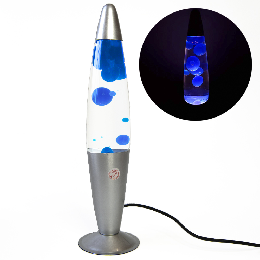 Творческим людям необходимо вдохновение. И каждый находит его в различных вещах. Если Вы ищете то, что будет Вас вдохновлять и давать Вам идеи для творчества. Интернет-магазин Подарок-ТУТ представляет Вам очень необычный аксессуар для Вашей комнаты или кабинета Лава лампа с парафином (40см) синяя. Лава лампа с парафином синяя - это очень необычный светильник ночник прекрасный источник для Вашего вдохновения. Лава лампа выполнена в виде колбы, в которой находится прозрачное масло и цветной парафин синего цвета. Эту самую колбу надо поместить на подставку, в которой находится лампочка, которая подсвечивает и начинает нагревать парафин. Может кто-то не знает, но в холодном состоянии парафин тяжелее масла и тем самым он лежит на дне колбы, а при нагревании становится легче и начинает плавать по колбе. Лампа представлена в разных цветовых гаммах. Такая лампа завораживает и даже гипнотизирует, заставляя смотреть на прекрасный эффект. Так же если после долгого рабочего дня Вы хотите расслабиться и просто посидеть в кресле и отдохнуть, то Лава лампа сделает Ваш вечер намного приятнее, тот эффект который произведет лампа на Вас, позволит Вам насладиться отдыхом на полную. Светильник работает от розетки 220V. Для большего срока службы изделия время работы разогретой лампы не должно превышать 8-10 часов. При нагревании снизу 30 или 35-ваттной лампочкой, парафин начинает расширятся, нагревшись он становится менее плотным чем жидкость в которой он находится и это заставляет его подниматься. Для разогрева парафина понадобится около часа, постоянно держать включенной лампу нельзя. Рекомендуемое время работы лампы не более 3-4 часов на максимальной яркости и нагреве, после достижения активного движения - интенсивность нагрева/яркости следует уменьшить, для обеспечения поддержания отпимальной температуры В комплектацию входит: стеклянная колба с парафином и маслом (жидкость бесцветная, а парафин цветной), пластиковая подставка со шнуром питания с реле (для регуляции интенсивности нагрева), подключающимся в розетку и крышка, маленькая лампа накалывания.