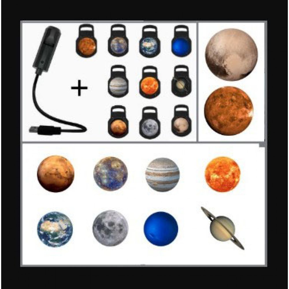 LED проектор-ночник USB 5V с 10 сменными слайдами «Планеты»