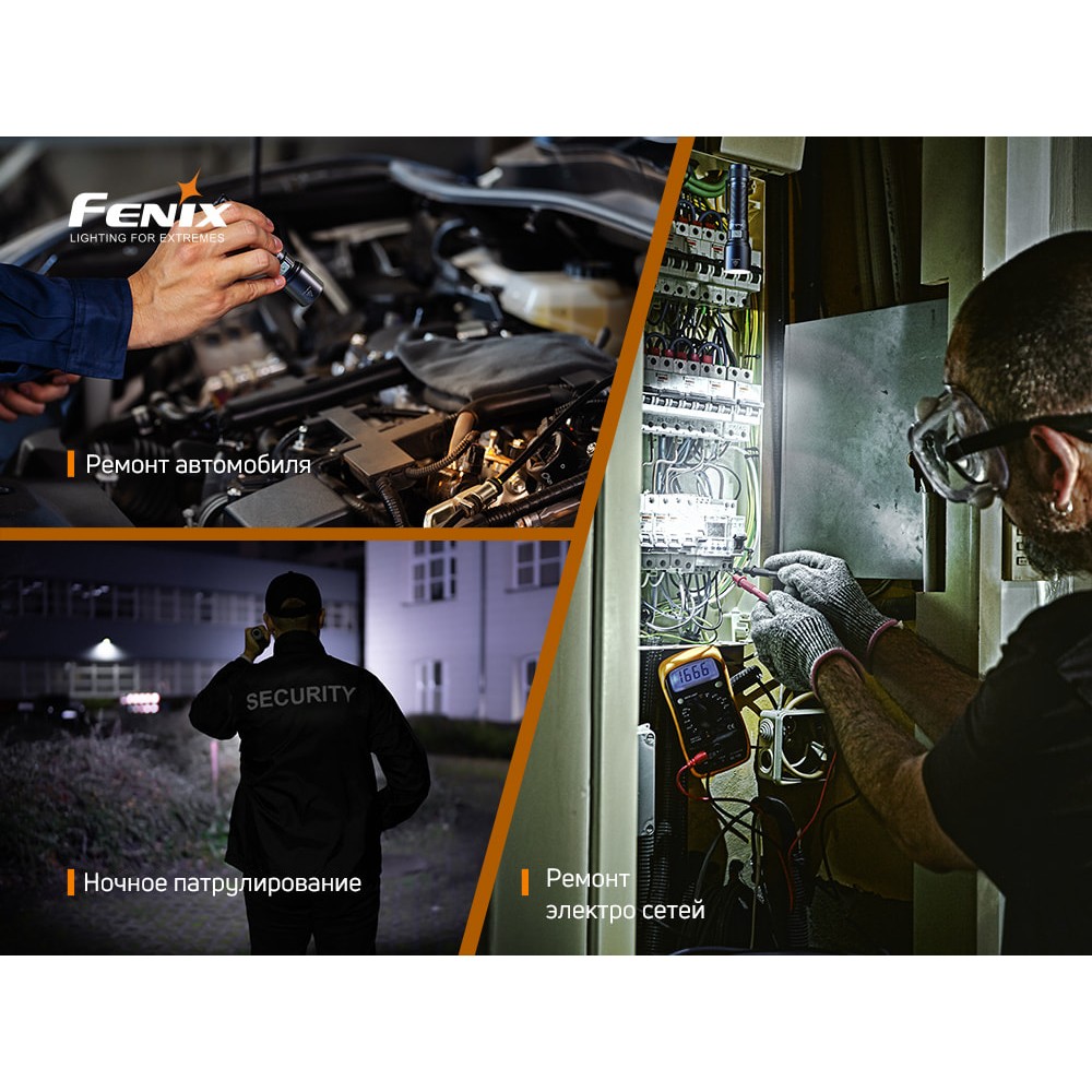 Кроме того, в фонаре предусмотрели функцию снижения яркости. Модель запрограммирована на переключение на более низкий уровень яркости вплоть до перехода в минимальный режим, когда напряжение уменьшается ниже определенного уровня. Когда в режиме Low напряжение падает до минимального уровня, индикатор мигает красным, сообщая о своевременной подзарядке или замене аккумулятора. Действует такая функция только с батареей Fenix ARB-L18 серии 18650.