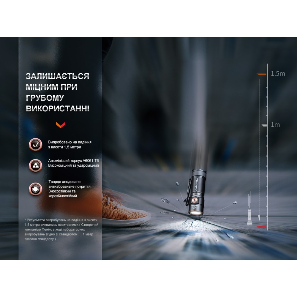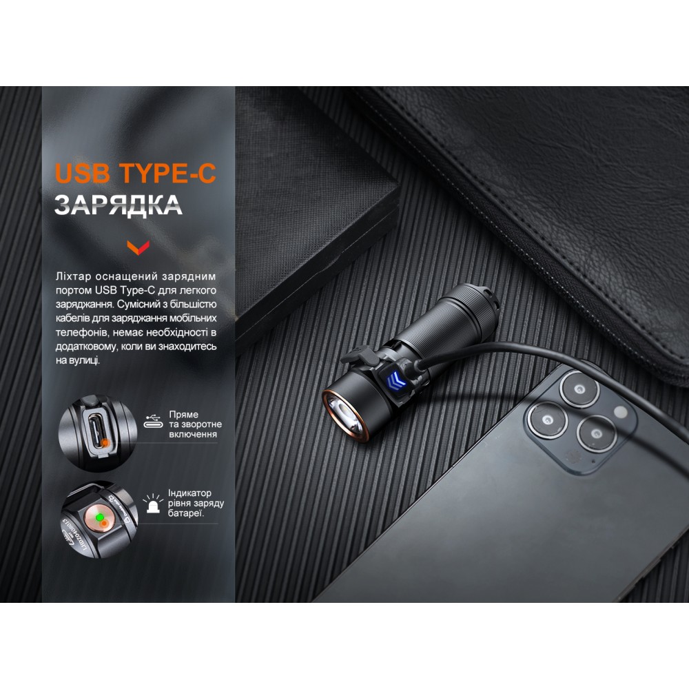 Аккумуляторный фонарь Fenix E18R V2.0 – это мощный прибор в ультракомпактном дизайне для повседневной носки. Этот фонарь выдает максимум 1200 люмен с дальнобойностью луча 146 метров. Питание фонаря происходит от входящего в комплект литий-ионного аккумулятора ARB-L16-700P полностью заряжаемого через зарядный порт USB Type-C. Удобный боковой переключатель активирует все режимы освещения и включает в себя индикатор уровня заряда батареи, помогая вам всегда знать состояние заряженности.