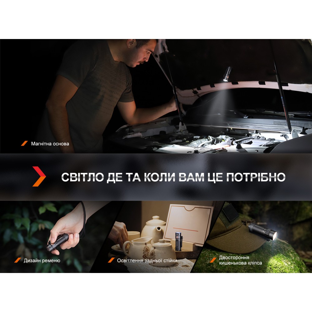 Магнитное основание облегчает использование без помощи рук для крепления фонаря к большинству металлических поверхностей. Водонепроницаемый и пыленепроницаемый, Fenix E18R V2.0 может выполнять не только домашние задания. Двухсторонняя карманная клипса надежно защищает модель независимо от того, предпочитаете ли вы хранить/переносить безэлем вверх или вниз. Возьмите этот фонарь с собой в поход, используйте на работе или держите его на случай непредвиденных обстоятельств.